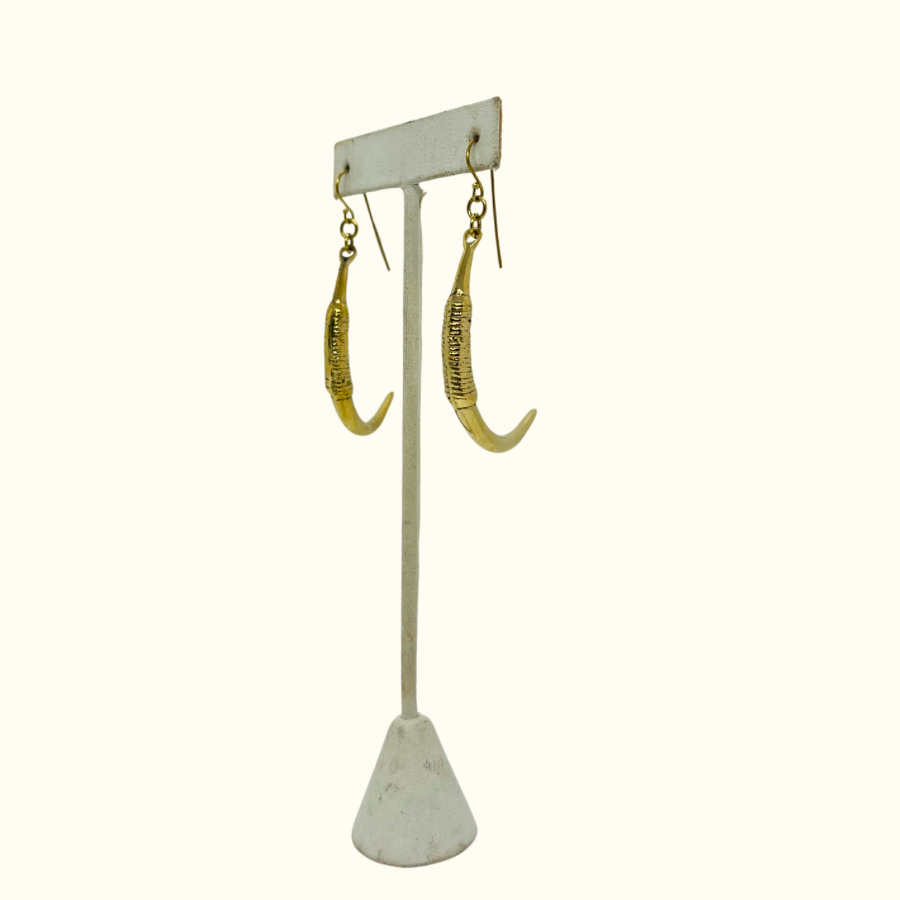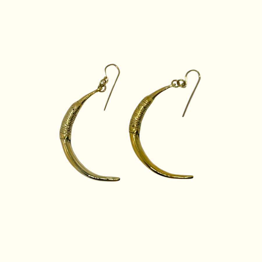 Elevate your style with our Crescent Moon Earrings in brass. Inspired by the shimmering crescent moon against the African or Southern coast night sky, these unique earrings add a touch of elegance to any outfit. Let the shining brass and intricate design transport you to a world of luxury and beauty.