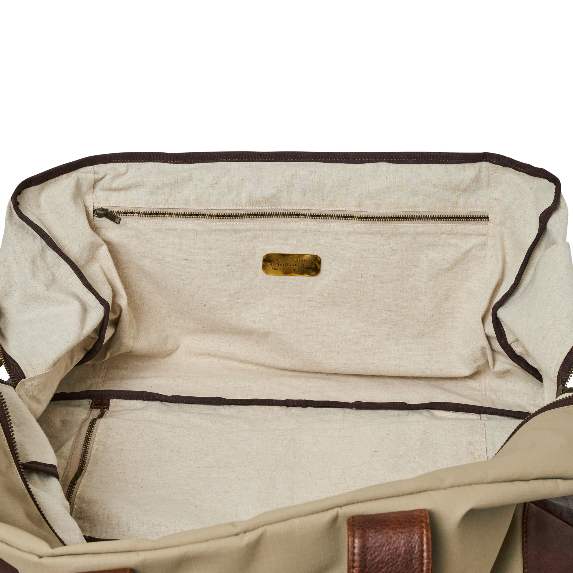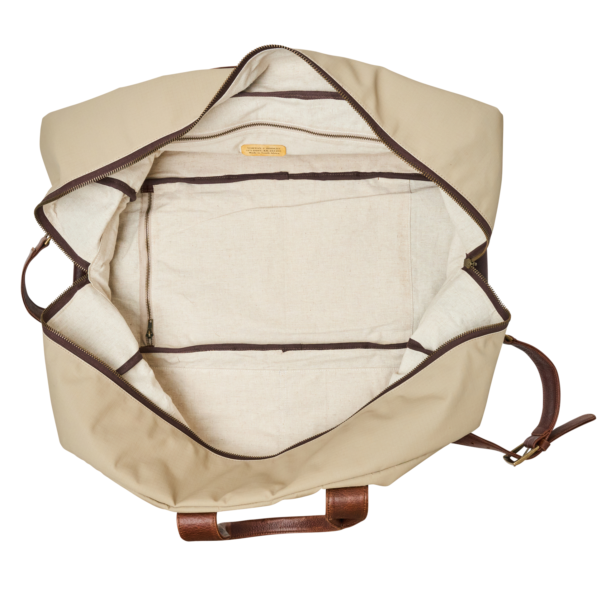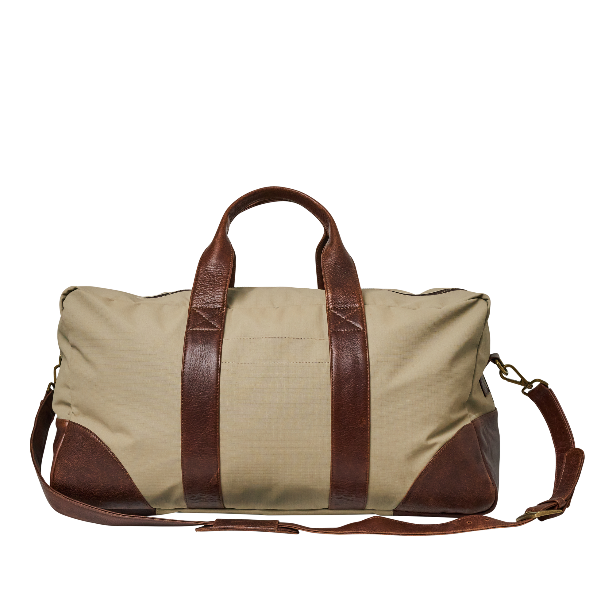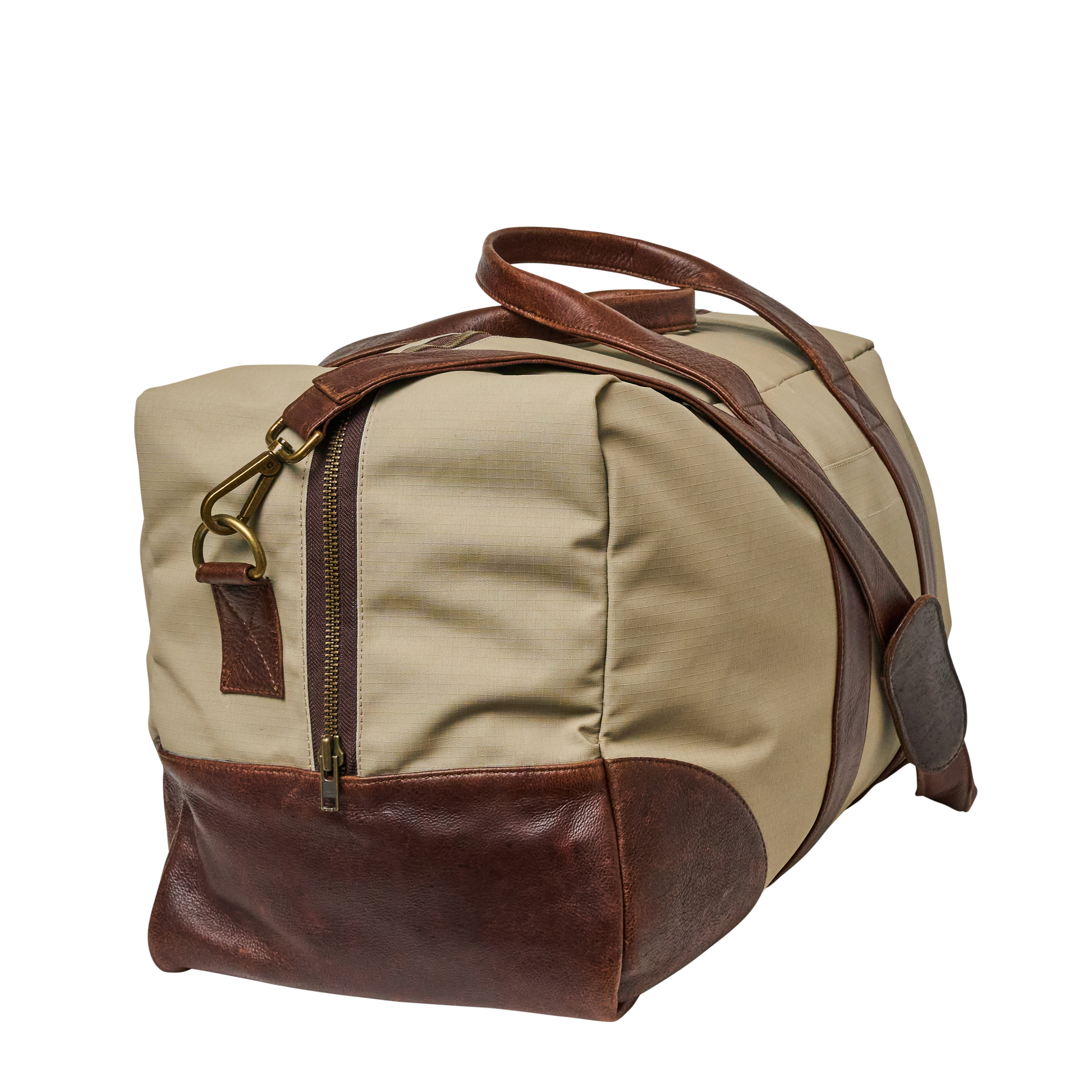 With its durable African tent material and luxurious oryx leather, this heavy duty duffle is ready to accompany you on all of your big adventures. Whether you're headed on a rugged safari trip or a weekend getaway, the Durban Duffle offers the perfect combination of practicality and sophistication. Handcrafted in South Africa, this is a bag that exudes elegance and exclusivity olive, navy or sand, it is the perfect duffle to take on any safari trip. Secret compartment for your valuables, it’s an easy bag to load on the bush plane but nice enough to throw in your trunk for a weekend getaway.