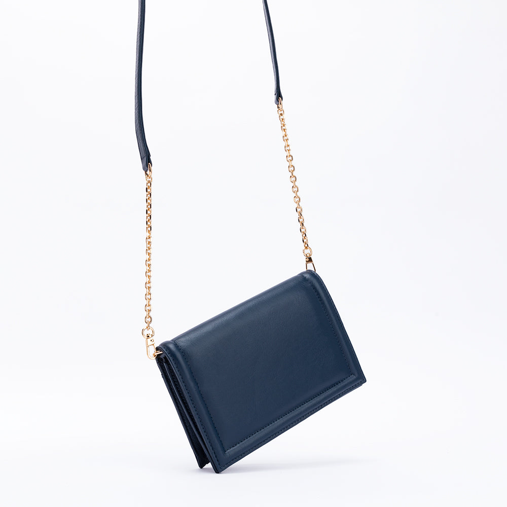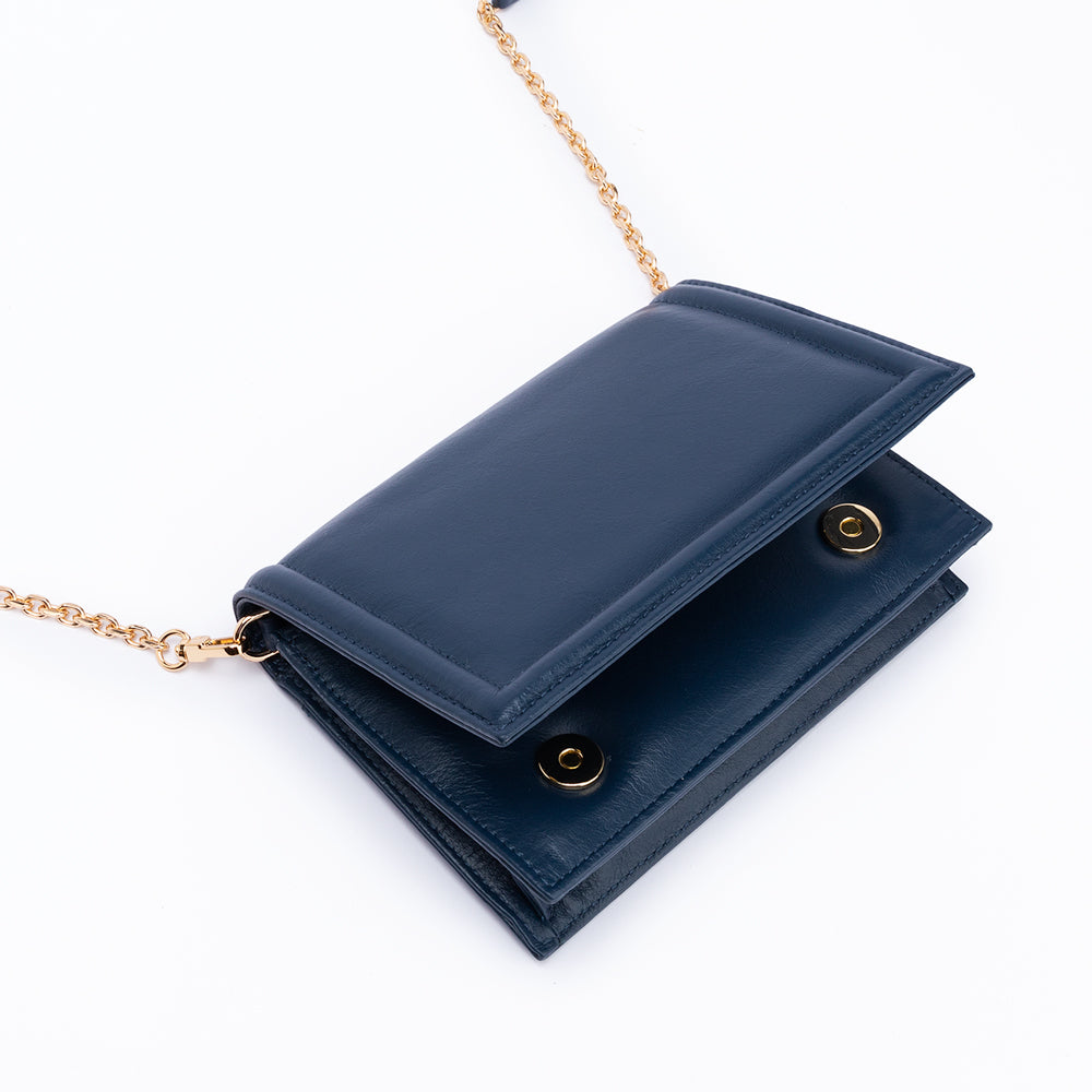 The Green Market Crossbody in Navy Leather is an elegant and convertible to a clutch crafted from smooth bovine leather and finished with classic details. Each piece is handmade by skilled artisans, sourced from traceable materials for a luxurious and sustainable accessory. Wear it to add the perfect touch of sophistication to any ensemble.