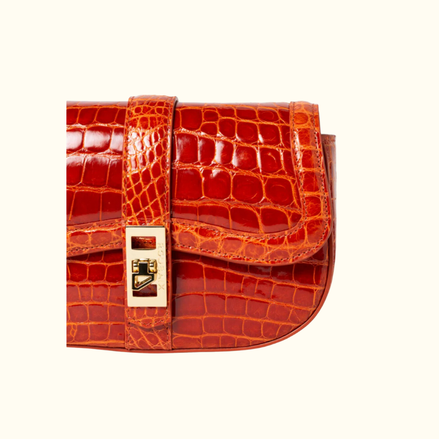 Designed as an elegant fanny pack, this bag has a spectrum of uses. It has a removable belt and custom unique locking closure. The Miller bag can be worn around the waist, as a mini cross body or as an elegant clutch. All leather is imported from Italy.