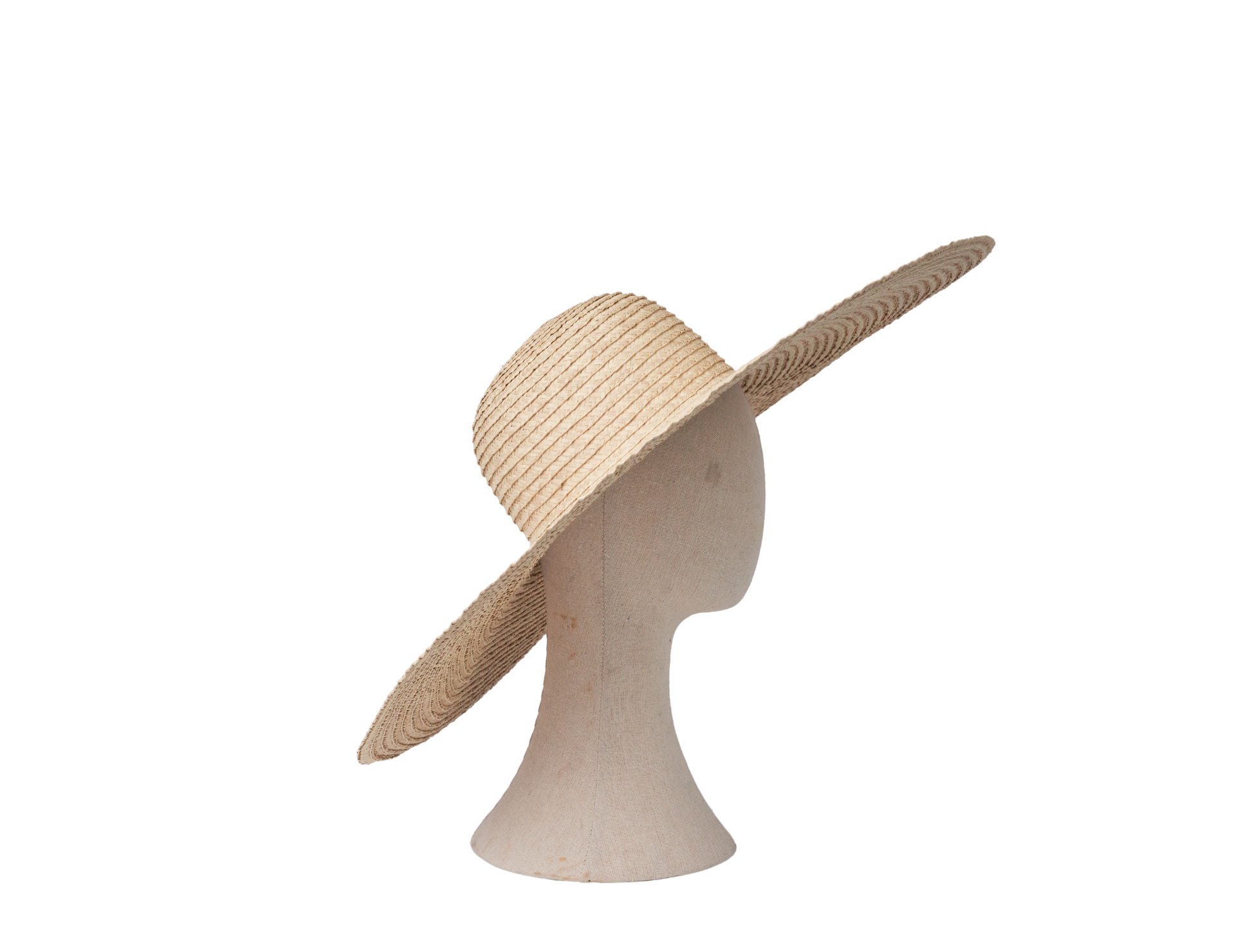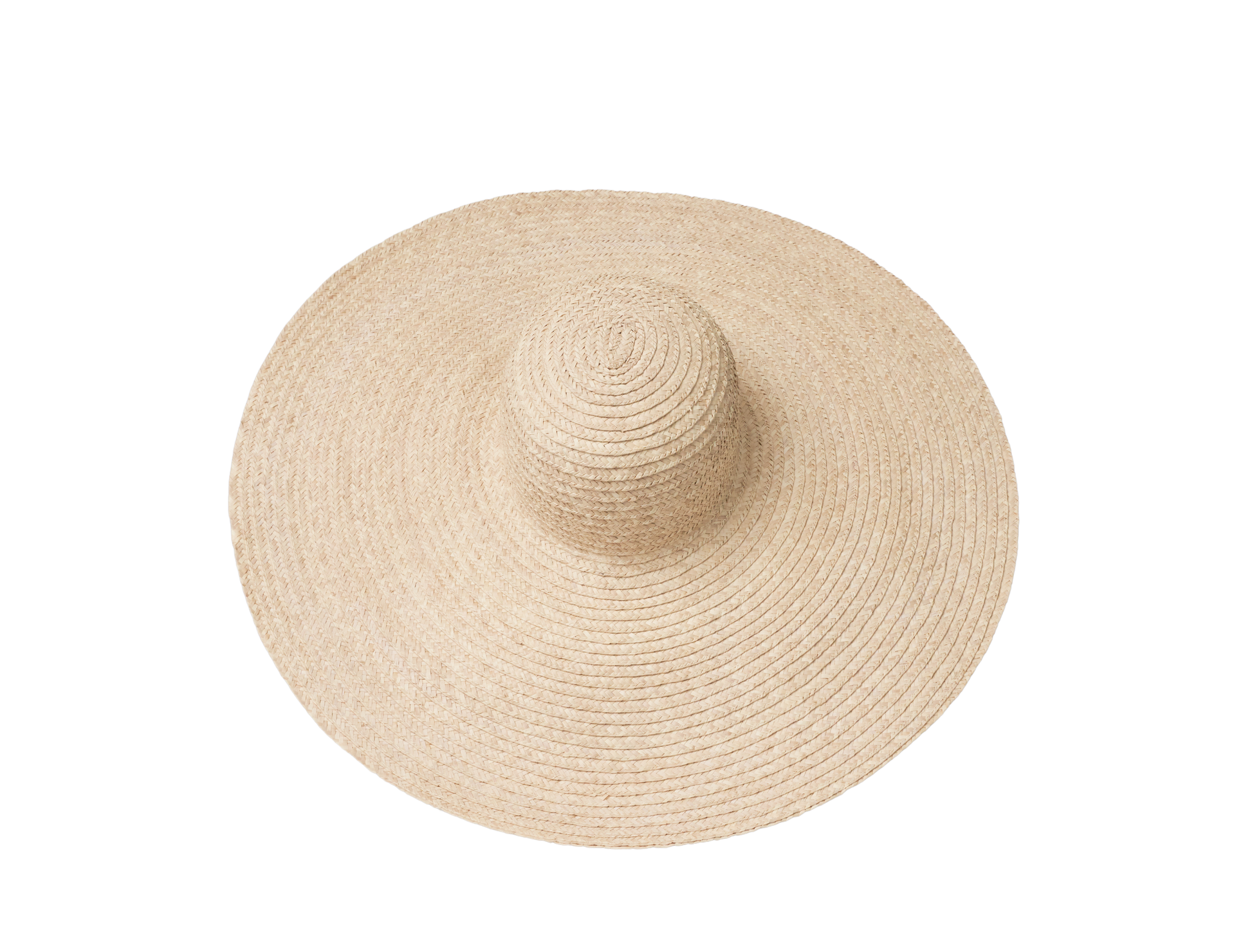 This woven hat offers sun protection while making you feel glamorous. Made from hand-braided plaited palm from Uganda, this hat features a wide brim with gold grommets to secure it with a sash. UV protection. Hand made into a hat shape in a woman-owned and run atelier in South Africa.