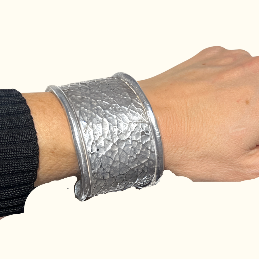 A cuff that is beyond words. A pure sterling silver cast cuff that makes you feel like super woman. A perfect encapsulation of Milan's power and beauty. Can be made formed to fit your wrist size.