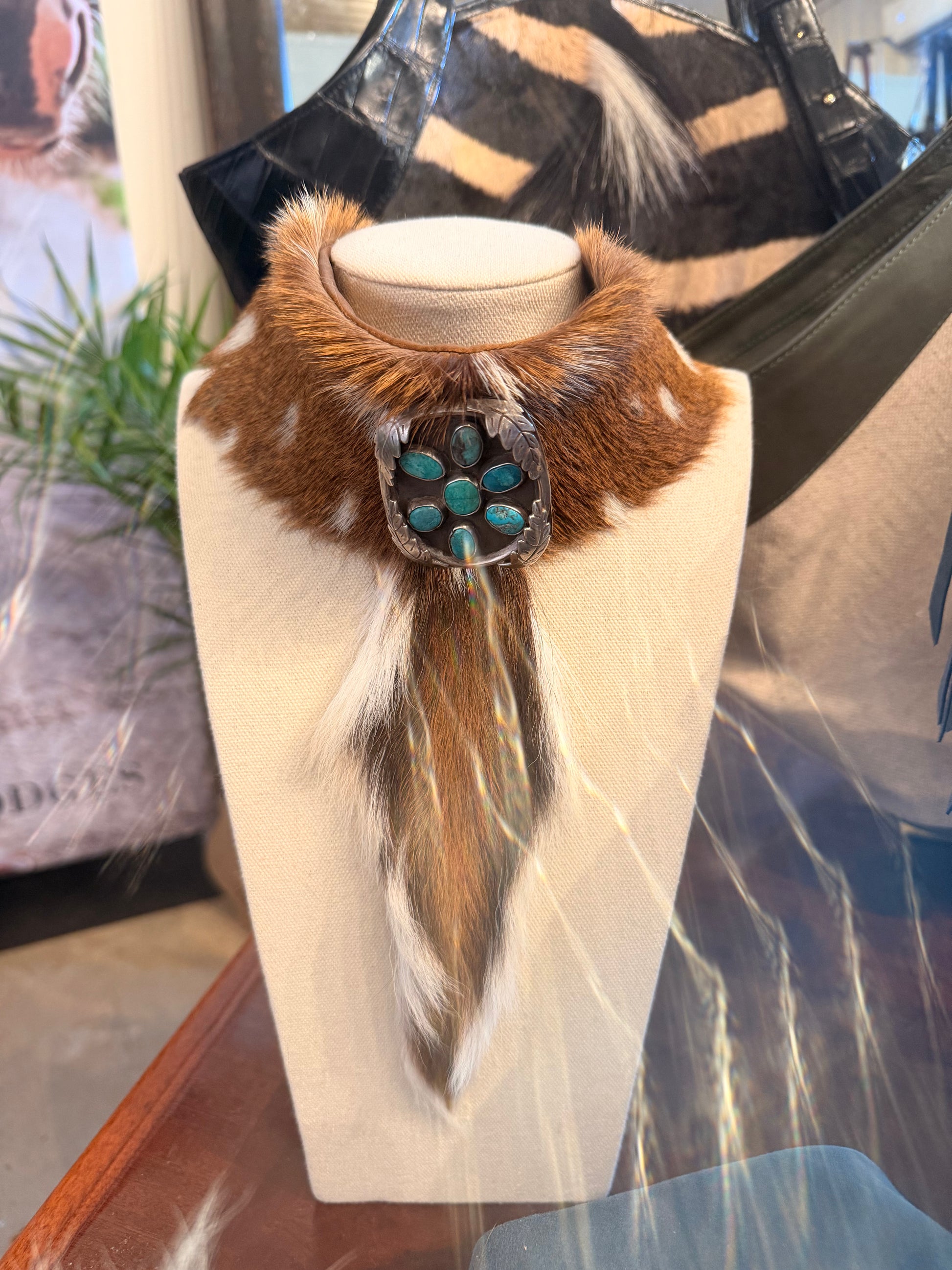 Sterling Silver and Turquoise Brooch adorning with Axis Deer Torque. Wear them together or separate. 1 of 1.