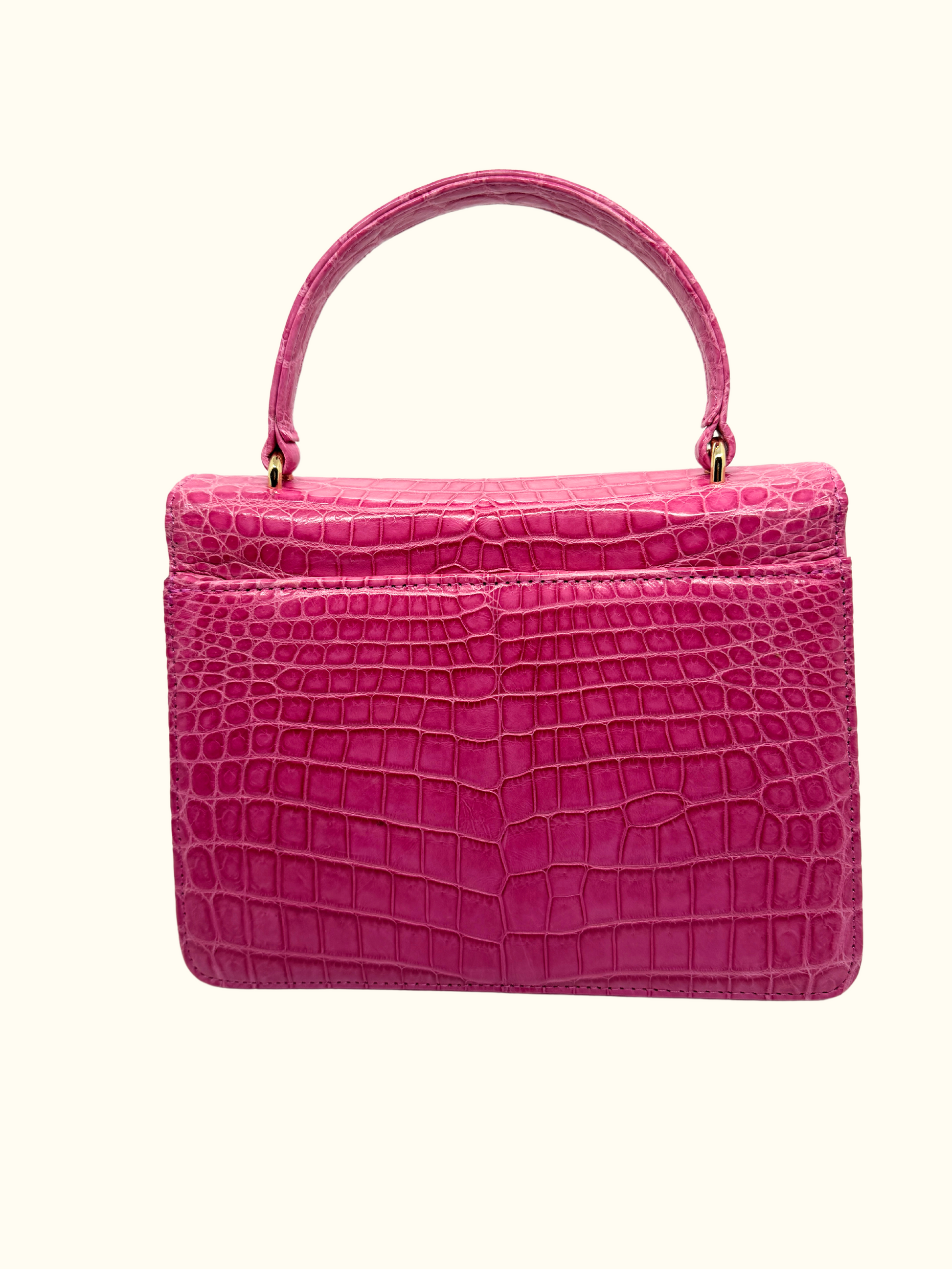 Classic and always stylish, this small structured bag was inspired by the fabulous handbags the founder's grandmother used when she was growing up. This bag is the smallest version in the range that takes the name of her Grammy Norton. This bench-crafted beauty is all Nile Croc leather in the perfect Barbie Pink.