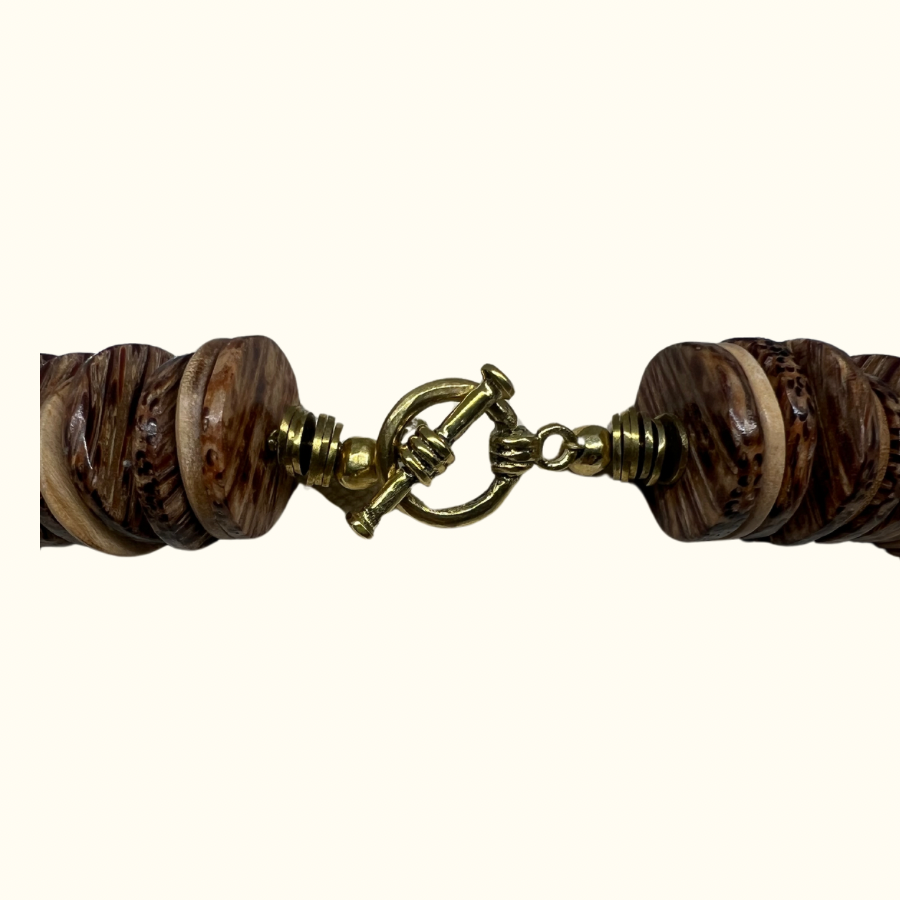 Zebra Coconut Wood and Bone Bead Necklace